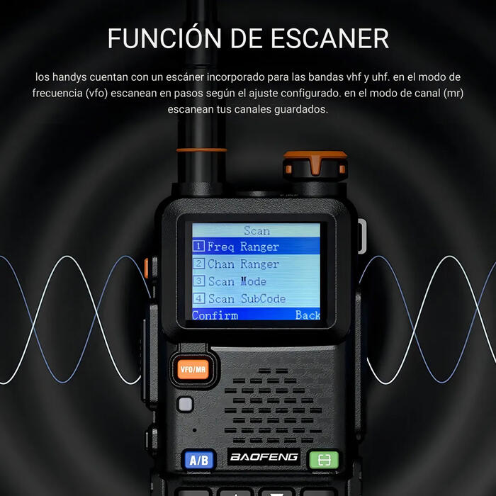 Pantalla: Pantalla a color de 1.77 pulgadas que permite ver dos frecuencias al mismo tiempo.