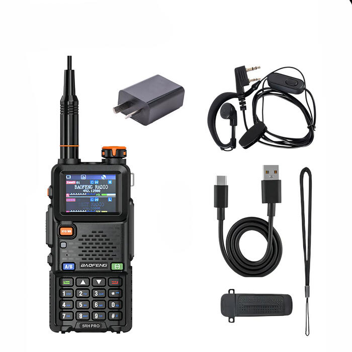 El Baofeng UV-5RH es una radio de alta potencia (10W) con doble banda (VHF/UHF) y una pantalla a color. Este modelo avanzado incluye características como carga por USB-C, 999 canales de memoria, una linterna integrada y funciones de búsqueda de frecuencia rápida. Es un equipo robusto diseñado para comunicaciones de largo alcance en actividades al aire libre, emergencias y operaciones de seguridad.